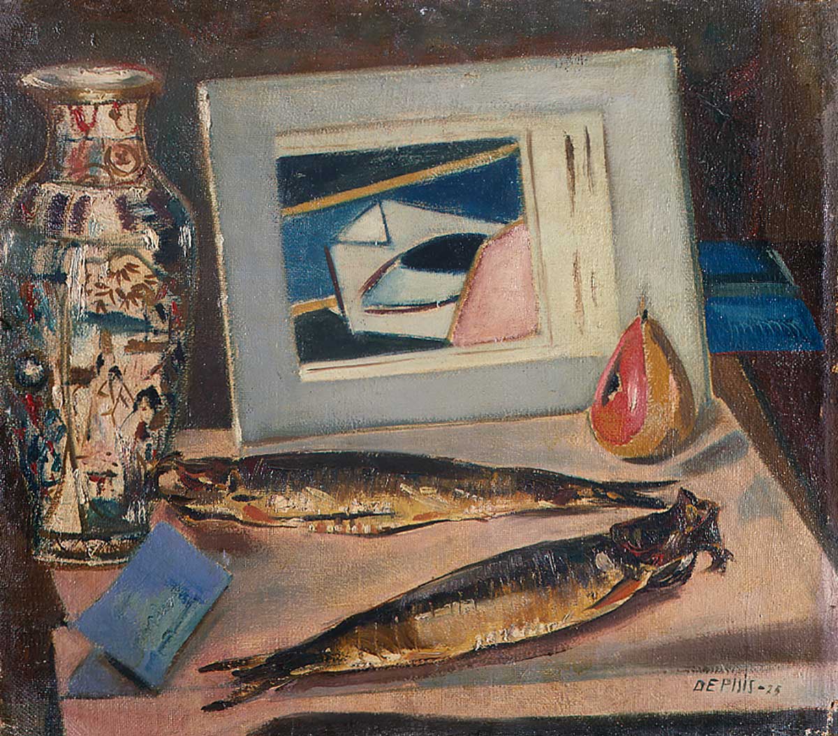 In Still Life with Eggs of 1924 and The Sacred Fish of 1925, we find citations from de Chirico (Eye and Sacred Fishes) and Morandi (The Fruit Bowl), flanked by objects linked to the author’s own poetics, such as the glass with the four-leaf clover, the Chinese vase and the folded sheet of paper. In 1925 he moved to Paris and concentrated on the Impressionist research into the use of light and color, but without giving up the memory of his Metaphysical atmospheres.